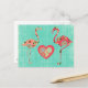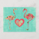 Las tarjetas de amor Flamingo rosa—flamencos rosados retro en un fondo verde angustiado.