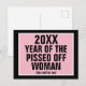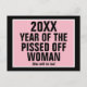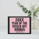 Texto: [Año de plantilla] Año de la mujer perdida. [Template Year} también lo será. Como se muestra, fondo negro, con un rectángulo rosa con un marco blanco. Negro todo el texto de mayúsculas.
