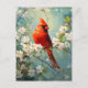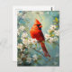 Una hermosa postal con un cardenal vibrante encaramado en medio de delicadas flores blancas florecientes, que capturan la pacífica armonía de la naturaleza en un impresionante diseño artístico.