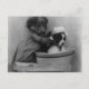 Un cachorro vestido que da a otro cachorro un baño en una bañera. Foto de época de 1914.