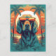 Diseño colorido de un Setter irlandés con gafas de sol en una playa tropical.