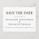 Boda de tipografía blanca y negra elegante estilo clásico de presupuesto Guardar postal de fecha