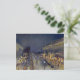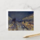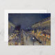 El Boulevard Montmartre de noche, 1897. Camille Pissarro. Paisaje urbano nocturno en tonos azul oscuro y amarillo. La calle de París. Carriles y gente caminan por la calle nocturna. Casas altas bajo techos rojos. Reproducción de obras famosas de imágenes artísticas de dominio público.