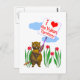 Postal con mi diseño de un personaje castor sosteniendo un cartel que dice "corazón el territorio yukón".