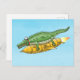 El cocodrilo verde vuela alto en el cielo usando su rápido cohete dorado.