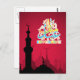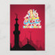 Una postal para la festividad de Eid con colorida caligrafía de Eid Mubarak en árabe e inglés