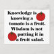 El conocimiento es saber que un tomate es una fruta. La sabiduría no es ponerla en una ensalada de fruta.