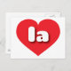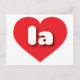 Esta postal tiene un vibrante corazón rojo que contiene las letras fundas de la negrita, blanca y redondeada, una abreviatura lúdica para el estado de Louisiana O la ciudad de Los Ángeles. El reverso de la tarjeta está en blanco, esperando el texto personalizado o los sentimientos escritos a mano.