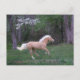 Palomino que corre agraciado en primavera entre árboles de madera del perro