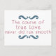 "El curso del verdadero amor nunca se desarrolló sin problemas". Una cita romántica clásica del Sueño de una noche de verano de Shakespeare en un suave diseño rosa y azul.