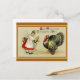¡A cualquiera le encantaría recibir esta tarjeta postal de deseos de Acción de Gracias con un ilustracion retro de un chica con un pavo!