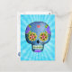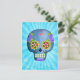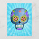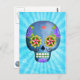 Arte Dia de Los Muertos - diseño azul del cráneo azucarero mexicano. estrellas náuticas en los ojos, rosas y corazón como decoración además de... lujosas bigotes. Este Día de los Muertos es una buena idea para el regalo para cualquier tipo de ocasión (además de Halloween por supuesto:).