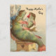 Adorable y divertido diseño de postales vintage con una madre de pescado sentada en un taburete alimentando a su bebé pescado con una botella. Texto de personalizable al final del "Feliz Día de la Madre"