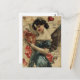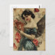 La vintage postal El día de San Valentín presenta una escena encantadora, una mujer etérea con delicadas alas, sumergida en el suave resplandor del amor. Cava una atesorada carta de amor en sus manos, con los ojos reflejando las emociones tiernas expresadas en las palabras cuidadosamente escritas. Los tonos sepia evocan una sensación de nostalgia, capturando la esencia eterna del romance en una época pasada.