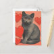Celebre el atemporal Día de San Valentín con esta postal de estilo vintage con un encantador gato de Chartreux. Este elegante felino, conocido por su frondoso abrigo azul-gris y sus cautivantes ojos ámbar, está rodeado por un ambiente romántico de San Valentín. Perfecto para coleccionistas, amantes de los gatos, o como un sincero saludo, este diseño une nostalgia, belleza y el espíritu del amor.