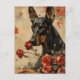 Captura la esencia de la nostalgia con esta vintage postal de un elegante y regal Doberman rodeado de delicados rosas y corazones. La imagen de tono sepia exuda calidez eterna, evocando un sentido de amor y compañía. La fortaleza y la protección del Doberman se complementan con el suave telón de fondo floral, lo que lo convierte en un reconfortante placer para los amantes del perro y los amantes de la cosecha.