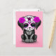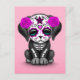 Este bonito diseño cuenta con un pequeño cachorro negro decorado con motivos del Día de los Muertos. Rosas morados aparecen en los oídos de los perros mientras que una estrella de cinco puntos se sienta en el medio de la frente. La cara del cachorro negro está pintada de blanco y decorada con motivos de remolinos y puntos en la tradición del Día de los Cajones de azúcar Muertos. En el cuerpo del perro aparecen huesos blancos y una jaula de costillas que le dan un aspecto esquelético. La cabeza de gran tamaño y el cuerpo pequeño, junto con los detalles de la piel, crean una hermosa combinación de un aspecto personalizado y realista. Este cachorro único y adorable es un adorable diseño del Día de los Muertos.
