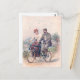 La imagen muestra a un par de personas yendo en bicicleta por un camino de tierra lado a lado en una bicicleta de tres ruedas durante dos años mientras un hombre mayor los persigue en el fondo. Creado/Publicado [Nueva York]: [R. H. Wolff & Co.], [1896]. Cursado de la colección digital de la Biblioteca del Congreso.