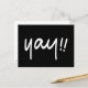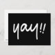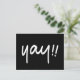 Una sola línea de texto manuscrito blanco que lee "yay!!" El color de fondo es adaptable.