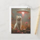 Postal El gato blanco y un OVNI