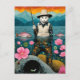 Una colorida obra de arte en un estilo surrealista de pesca de gatos