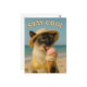 Envíe albornoces dulces de verano con esta adorable postal donde aparece el gato siamés lamiendo un helado derretido bajo el sol. Rockando una ropa elegante, es la reina de estar fresca y luciendo fabulosa. Perfecto para los amantes de los gatos, las bañeras y todo aquel que necesite un poco de frescor en su buzón.