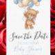 Bear Teddy Bear Balloon Baby Shower Save the Date Be el primero en conocer sobre una ducha de recién nacido con nuestra invitación Save the Date! Con un hermoso oso de peluche, este diseño es perfecto para celebrar la llegada de un bebé. ¡Envíe estas invitaciones a sus amigos, familia y compañeros de trabajo y prepárese para algunas sorpresas dulces! Un diseño perfecto para una ducha de bebé. El globo azul aporta cierta serenidad, mientras que los globos crema complementan los colores de su fiesta. El diseño es fácil de personalizar, sólo con cambiar su color o texto. Visite nuestra tienda para recibir invitaciones para duchas de bebé con temas de Teddy Bear y otros artículos de papelería a juego: