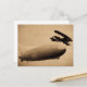 Postal El Graf Zeppelin acercándose a la ciudad de Nueva