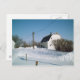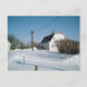 Un granero visto desde la carretera en una granja en Iowa en invierno sin ningún efecto ni toques. Los arbustos son lilatas.