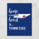 El hogar de Tennessee es donde está el corazón - en escritura mixta y fuente blanca en mayúsculas con la silueta del estado y un corazón rojo