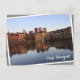Postal del moderno horizonte del centro de la ciudad de La Haya junto con el histórico museo Mauritshuis y la sede del Parlamento del gobierno con reflexión en el agua fija del lago Hofvijver al atardecer en los Países Bajos con un borde blanco y el texto: "La Haya". Está un poco rotado para crear la ilusión de que se suelte.