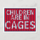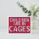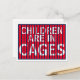 Trump es un hombre atroz que hace cosas atroces. Descripción de la imagen: marco azul de medianoche. Fondo rojo brillante. 17 líneas internas que representan peleas en la cárcel. Blancas todas las gorras son sans serif el texto dice en tres líneas, "Los niños están en jaulas".