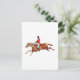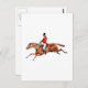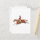 Un ilustracion de un cazador inglés vestido con un abrigo rojo y montado a caballo.