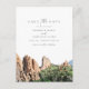 Esto ahorra la postal de fecha que incluye un cuadro acuarela de Garden of the Gods. Utilice esta plantilla para editar las fuentes, el color de fuente y el color de fondo para que coincidan con sus necesidades de evento. Edite *most* frases para que coincidan con sus necesidades y añada fácilmente un mensaje especial al fondo de la invitación.