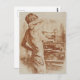 Esta postal presenta un hermoso dibujo de 1892 de Otto Greiner, titulado "El litografo". El dibujo representa a un joven guapo, tonificado y sin camisa posando para un caballero mayor y guapo.