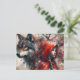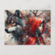 Postal El lobo mira sobre el pequeño zumbido rojo