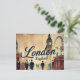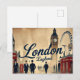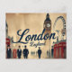 Esta vintage postal captura el encanto eterno de Londres, Inglaterra — desde el icónico Big Ben y los dobles-tumbonas rojas hasta puentes históricos y monumentos reales. Con tonos retro y estilo clásico, es ideal para los amantes de la cultura británica, los viajes y el encanto nostálgico.