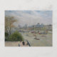 El Louvre, primavera. Camille Pissarro. Paisaje primaveral en colores cálidos. Un gran río fluye por la ciudad. Los barcos de vapor navegan a lo largo del río. En la orilla opuesta hay edificios altos. Hay nubes en el cielo. Reproducción de obras famosas de imágenes artísticas de dominio público.