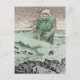 Ilustracion pintoresco y colorido de monstruo del mar trepando de las olas a las rocas. Ilustracion del artista noruego Theodor Kittelsen.