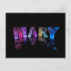 Esta imagen es una fotografía de cartas hechas a mano, que cambian al azar, produciendo patrones únicos y colores de luz. El nombre de Mary se refleja en el agua fija, con hexágonos de Relieve metalizado flotante. Las letras parecen esculpidas de hielo o cristal. Si no puedes encontrar un nombre que quieras, por favor ponte en contacto, y lo pondré en mi lista. Por favor, visite NamesInLights.co.uk para más ejemplos del estándar de fotografía de estos productos.