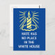 El odio no tiene lugar en el diseño de la lámpara de araña de la Casa Blanca. El odio no tiene cabida en la Casa Blanca y, sin embargo, Trump sigue lanzando una agenda racista e intolerante todos los días, en las redes sociales, en discursos y en respuesta a entrevistas. Y mientras Trump expresa odio, la gente real vive con las consecuencias todos los días.