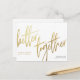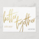 Minimalista guardar las tarjetas de fecha listas para ser personalizadas! Este diseño presenta "mejor juntos" en letras falsas de oro con sus nombres a la izquierda y su fecha a la derecha. No dude en ponerse en contacto conmigo a través del botón de abajo si necesita ayuda con la plantilla o si tiene solicitudes de personalización. Ver el enlace de la colección en esta página o visitar nuestra tienda para más diseños.