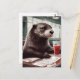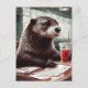 Una nutria disfruta de una bebida con sabor a cerezo en una cafetería con pintura generada por IA
