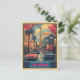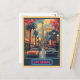 Una postal vibrante de estilo retro con el icónico paisaje urbano de Las Vegas y la Torre Eiffel al fondo. Diseñado en una paleta plana de colores pastel, esta pieza captura la energía y el encanto de la ciudad con formas simples, líneas audaces e iluminación cinematográfica.