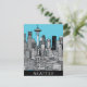 Postal El paisaje urbano de Seattle en Washington en blan