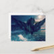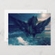 Una fresca foto-manipulación de un caballo negro pegasus, con las alas estiradas, emergiendo del profundo mar azul en la noche con la orilla espumosa bajo sus pies y las olas estrelladoras vistas a lo lejos. La hermosa iluminación y las sombras crean un ambiente mágico místico de fantasía. Se puede ver relámpagos cruzando el cielo. Una neblina luna llena se cierne sobre el brillante e iluminante océano por debajo.