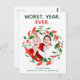 Esta graciosa postal de vacaciones presenta una cita graciosa que es un gran chiste para un mal año. Humor oscuro Navidades postales con tu familia dentro de una hermosa corona hueca con mechones y bayas