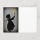 Arte de silueta vintage que representa a un ángel infantil sosteniendo una vela para iluminar la oscuridad.