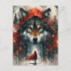 Postal El pequeño rojo y el lobo