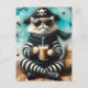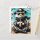 Un adorable pirata de gatos con un café con un adorable traje de pirata sentado en un muelle de madera creado por IA